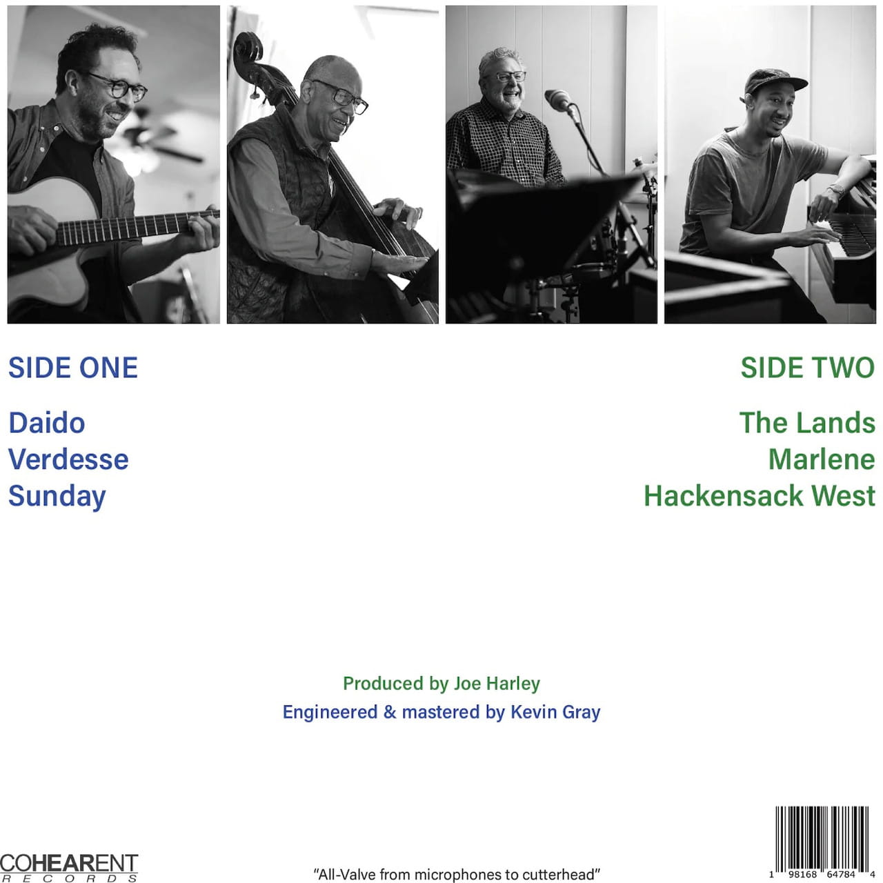 180-gram LP pressed at RTI / Deluxe tip-on jacket / AAA vinyl release / Produced by Joe Harley / Recorded all-analog for award-winning mastering engineer Kevin Gray's record label / Recorded all-analog/all-tube at Gray's new studio, Cohearent Recording, for Cohearent Records