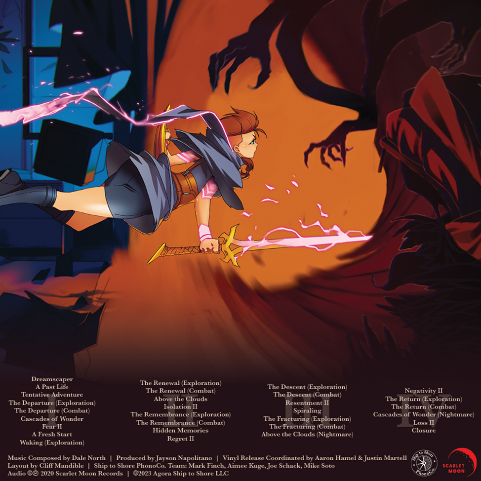 Ship to Shore PhonoCo. is proud to present - in association with Scarlet Moon Records - Dale North’s Dreamscaper (Original Game Soundtrack), now available on vinyl! An indie hit that blew critics & players away upon release, Dreamscaper is a roguelite action adventure game that sees the protagonist tackling emotional trauma experienced in the real world by battling their own subconscious at night in the titular dreamscape. Dale North creates an ethereal soundtrack to help drive the gameplay, offering dreamy melodies, haunting sonic landscapes and epic orchestral battle themes, all weaved together with a touch of melancholy and a rapturous exuberance that will be sure to captivate and enchant listeners. Now available as a 2LP release on limited edition colour vinyl, fans of VGM should absolutely not miss out on this utter gem!
